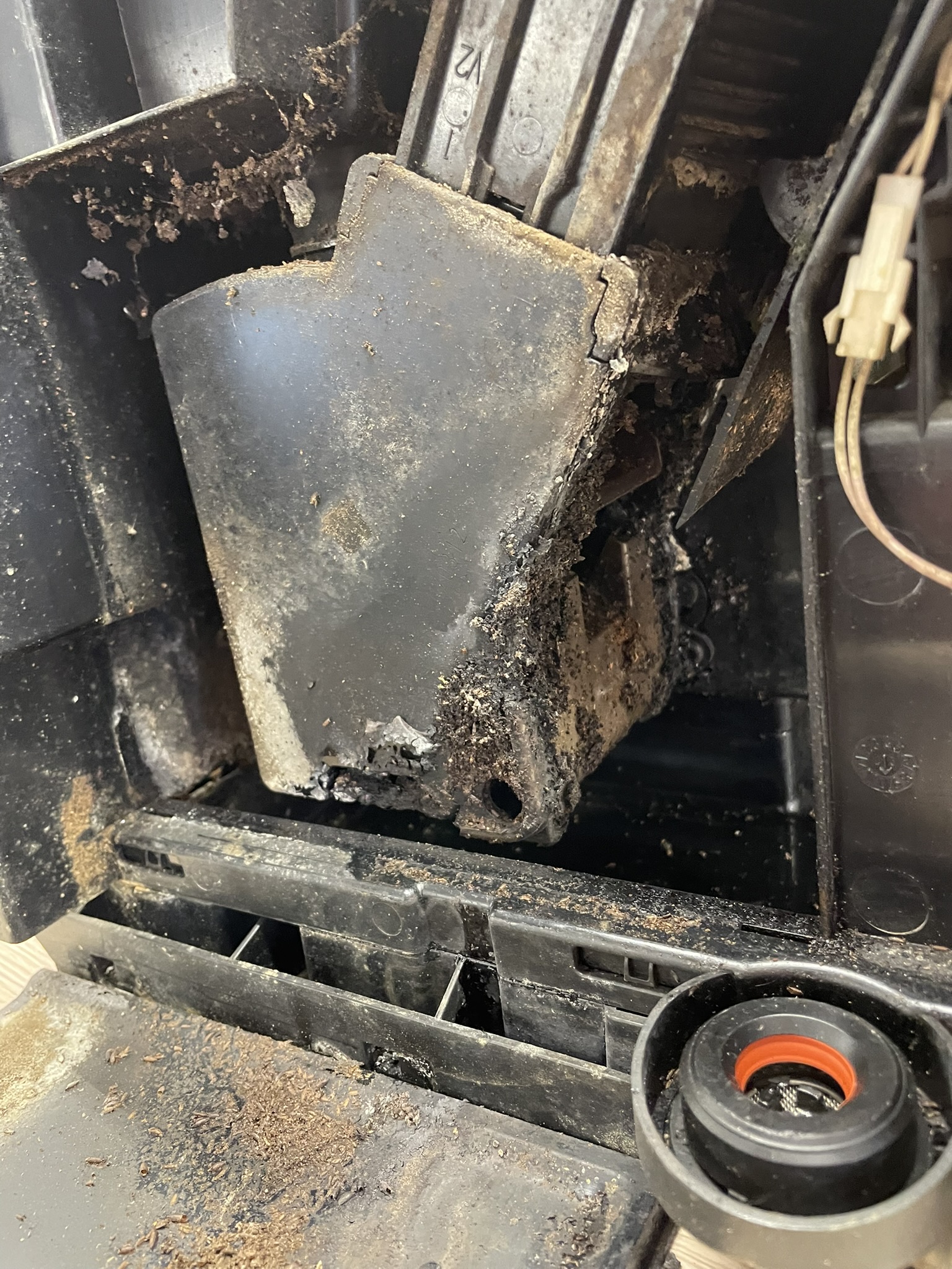 A darálóból a főzőegységbe vezető csúszda és maga a főzőegység is hajlamos penészesedésre, főleg ha nedves, ledarált kávé marad bennük. Itt a levegő nem kering, így a meleg és párás környezet ideális mikroorganizmusoknak. Az automata gép rendszeres karbantartása nélkül ezek a problémák idővel komoly higiéniai és működési gondokat okozhatnak.